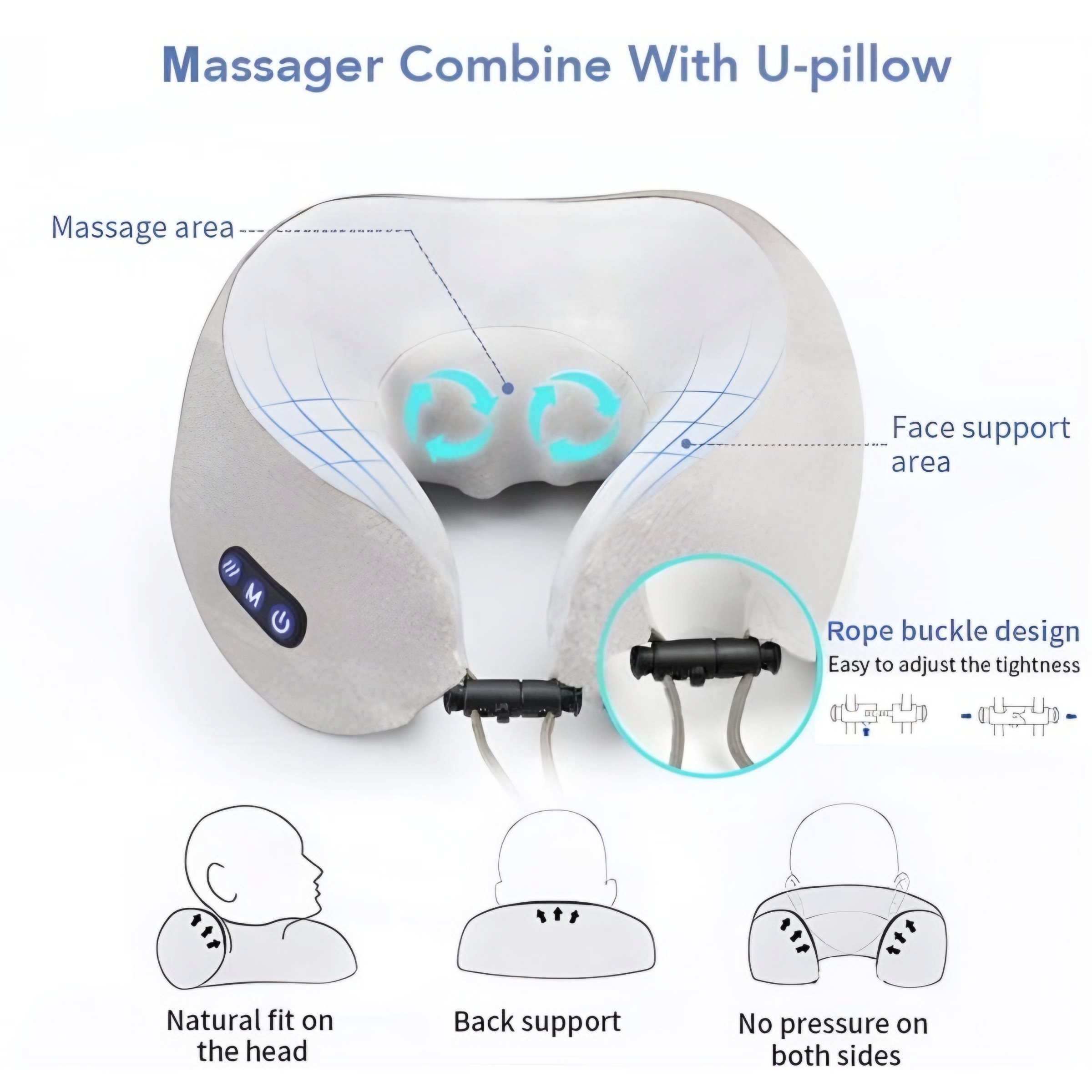 ماساژور برقی مدل U-SHAPED یک بالش ماساژور دور گردنی ساده و با کیفیت است که به فرد کمک میکند هنگام خوابیدن در شرایط نامناسب، نشستن برای مدت طولانی، حین مسافرت، کار اداری، استفاده از کامپیوتر و حتی حین مطالعه حالت مناسب گردن خود را حفظ کرده، و با ماساژ ملایم آن گرفتگیها و خستگیهای عضلات گردن و سرشانه را برطرف نماید.