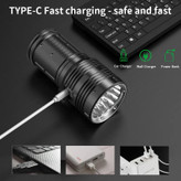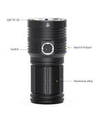 چراغ قوه قدرتمند دستی برند نات فایر مدل PK18 یک چراغ قوه دوکاره میباشد که علاوه بر یک چراغ قوه، می توان از آن به عنوان یک دستگاه پاوربانک نیز استفاده کرد. این چراغ قوه یک چراغ قوه 6 حالته است که شما میتوانید به عنوان چراغ قوه دستی، به عنوان لامپ اضطراری و به عنوان فلاشر استفاده کنید این چراغ قوه با برد مفید حداقل 300 متر با نوردهی 6 حالته و همچنین استفاده از 4 باطری داخلی همزمان نور بسیار مناسبی دارد و در حالت چراغ اضطراری تا 10 ساعت نوردهی دارد.به همراه چراغ قوه یک عدد کابل شارژ تایپ سی وجود دارد. و با توجه به قابلیت پاوربانک بودن این دستگاه با خیالی آسوده در سفر و تفریح و کوهنوردی و مواقع شکار میتوانید از آن جهت شارژ تلفن همراه خود استفاده نمایید. این دستگاه یک چراغ قوه دستی بسیار کار آمد است و در عین حال فوق العاده پرنور که در عین داشتن ابعاد مناسب برای حمل و نقل، دارای 4 عدد باتری لیتیومی 18650 با ظرفیت 2600 الی 3200 mAh قابل شارژ و دارای 18 عدد فوق العاده پر قدرت LED T6 است. این چراغ قوه برد (پرتاب نور) 300 الی 500 متری در تاریکی مطلق را دارد. جنس بدنه آن آلیاژ آلومینیوم است که از مقاومت بالایی برخرودار است و همچنین دارای قابلیت ضد آب IPX5 نیز می باشد. که به راحتی می توانید از آن در برف و باران در هنگام طبیعت گردی و کوهنوردی استفاده کنید.