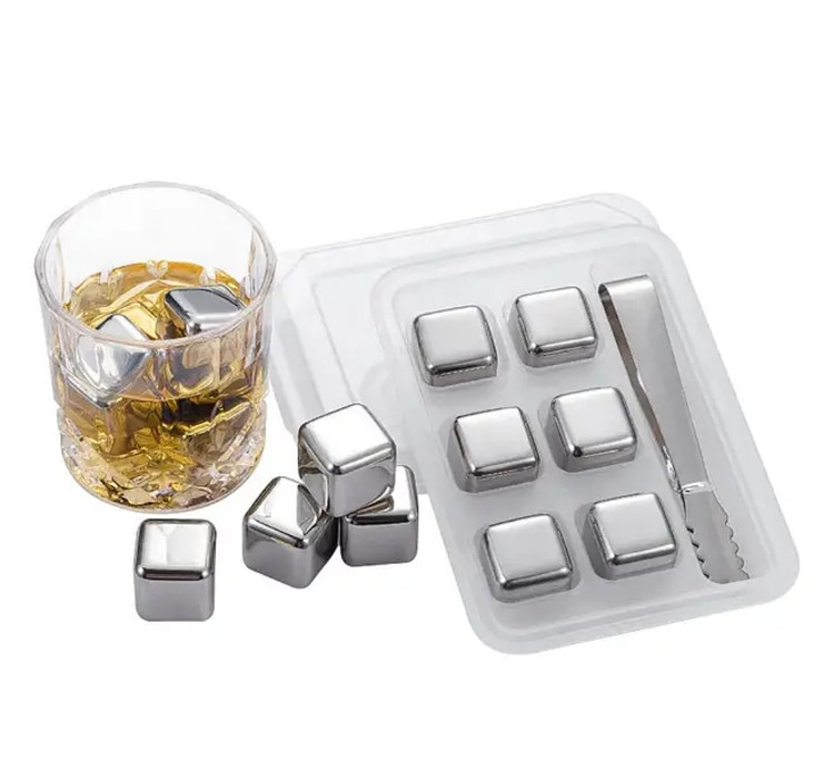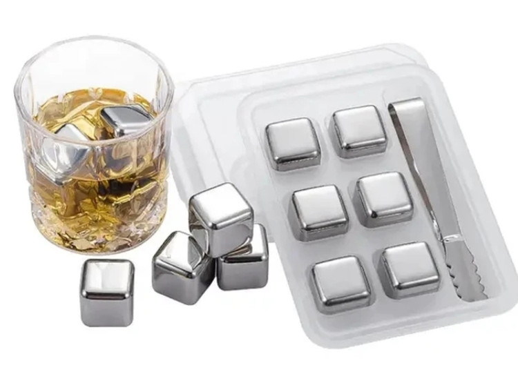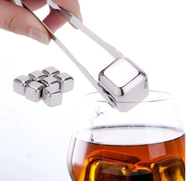 یخ مصنوعی استیل ۶عددی مکعبی وارداتی به همراه انبر و جعبه نگهدارنده