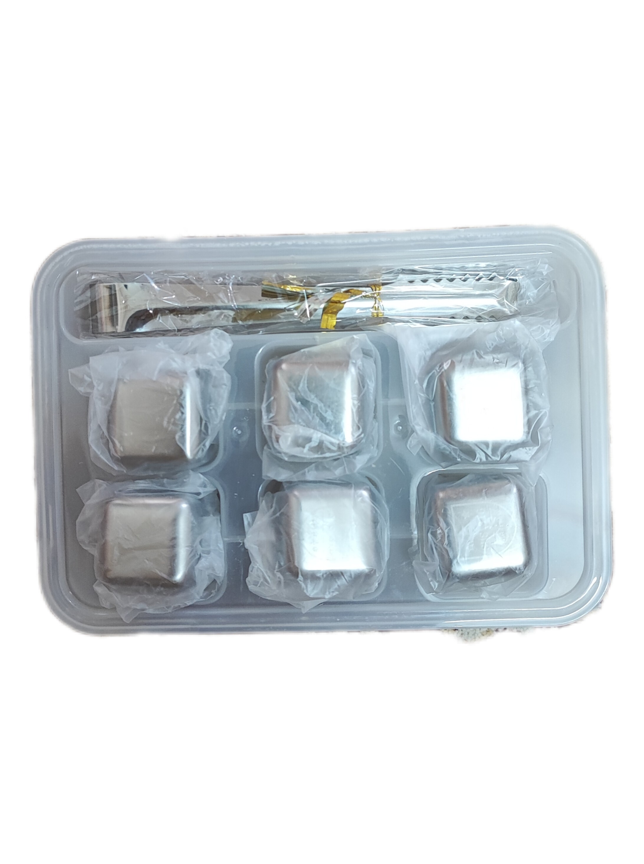 یخ مصنوعی استیل ۶عددی مکعبی وارداتی به همراه انبر و جعبه نگهدارنده