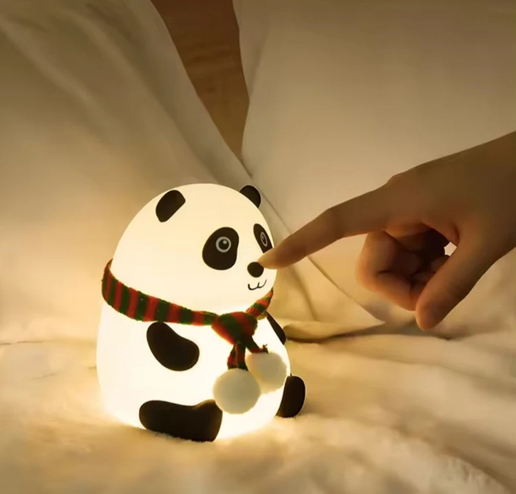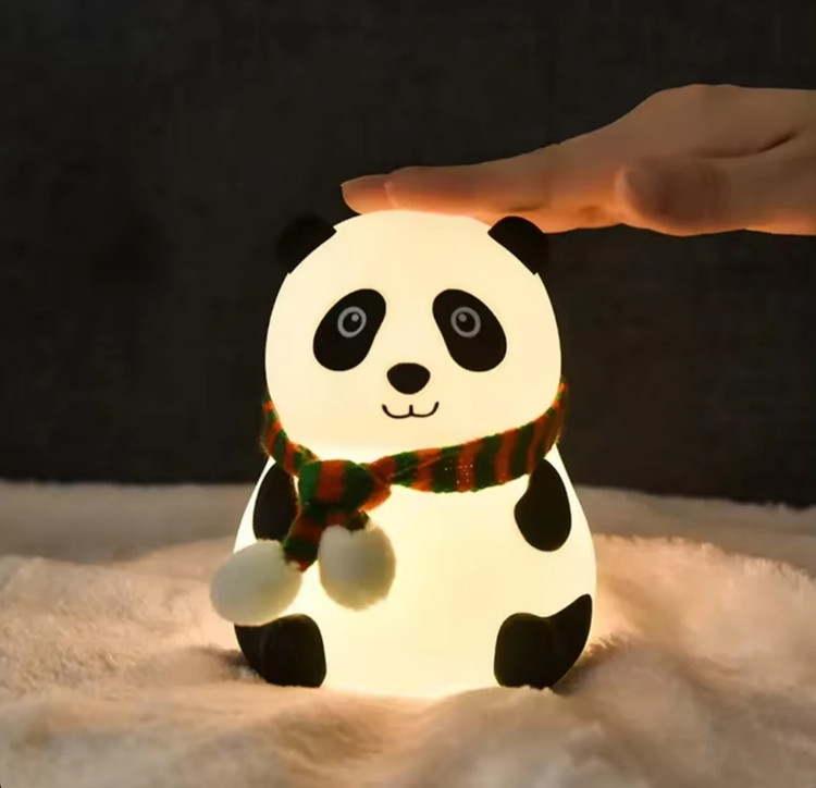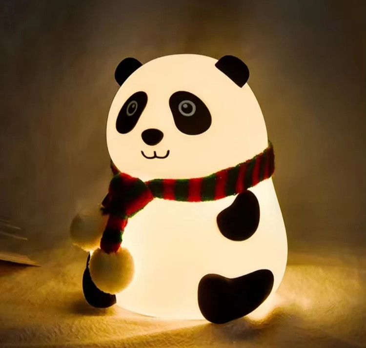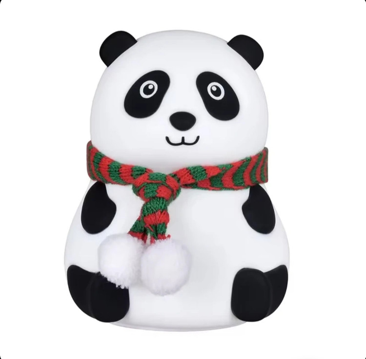 چراغ خواب سیلیکونی اتاق کودک طرح پاندا نشسته شال دار (چراغ خواب سلسکونی طرح پاندا نشسته زمستانی)