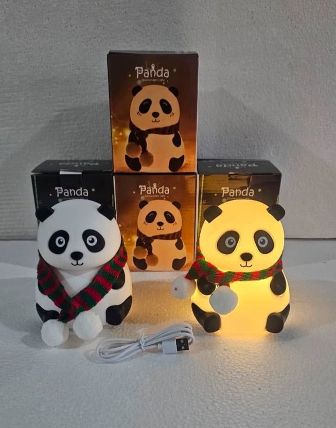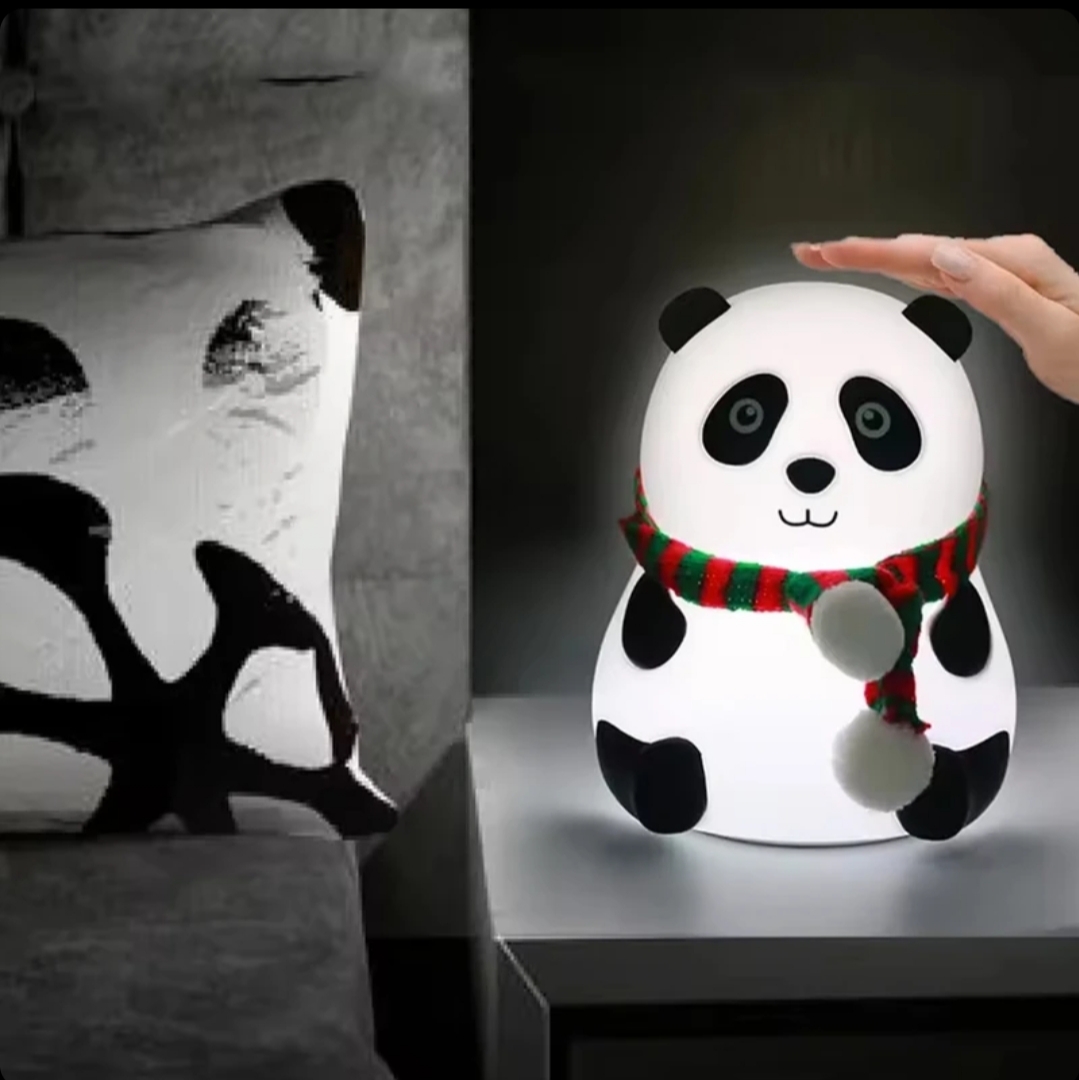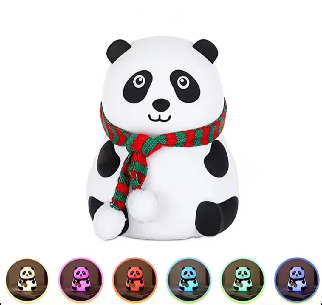 چراغ خواب سیلیکونی اتاق کودک طرح پاندا نشسته شال دار (چراغ خواب سلسکونی طرح پاندا نشسته زمستانی)