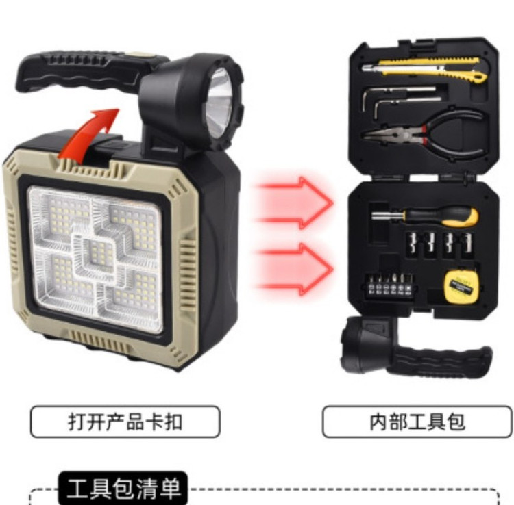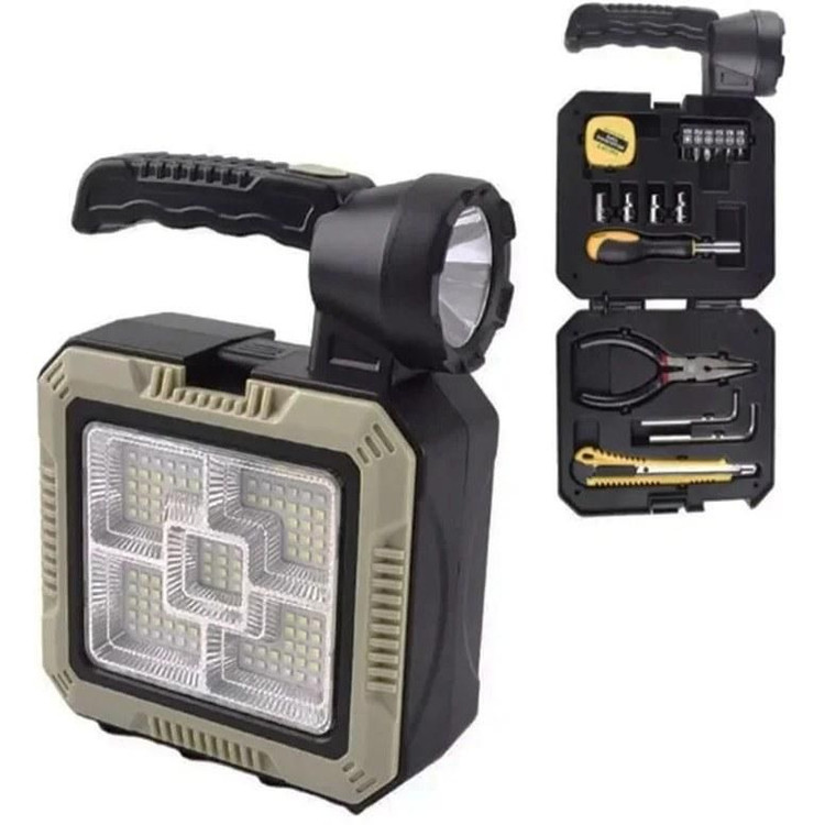 این محصول یک چراغ قوه چندکاره به نام "چراغ قوه سولار پرتابل مدل COB 7739-C" است. این گجت کاربردی ترکیبی از چراغ قوهوجعبه ابزار است و برای علاقهمندان به سفر، کمپینگ، و کارهای فنی بسیار مناسب است.
