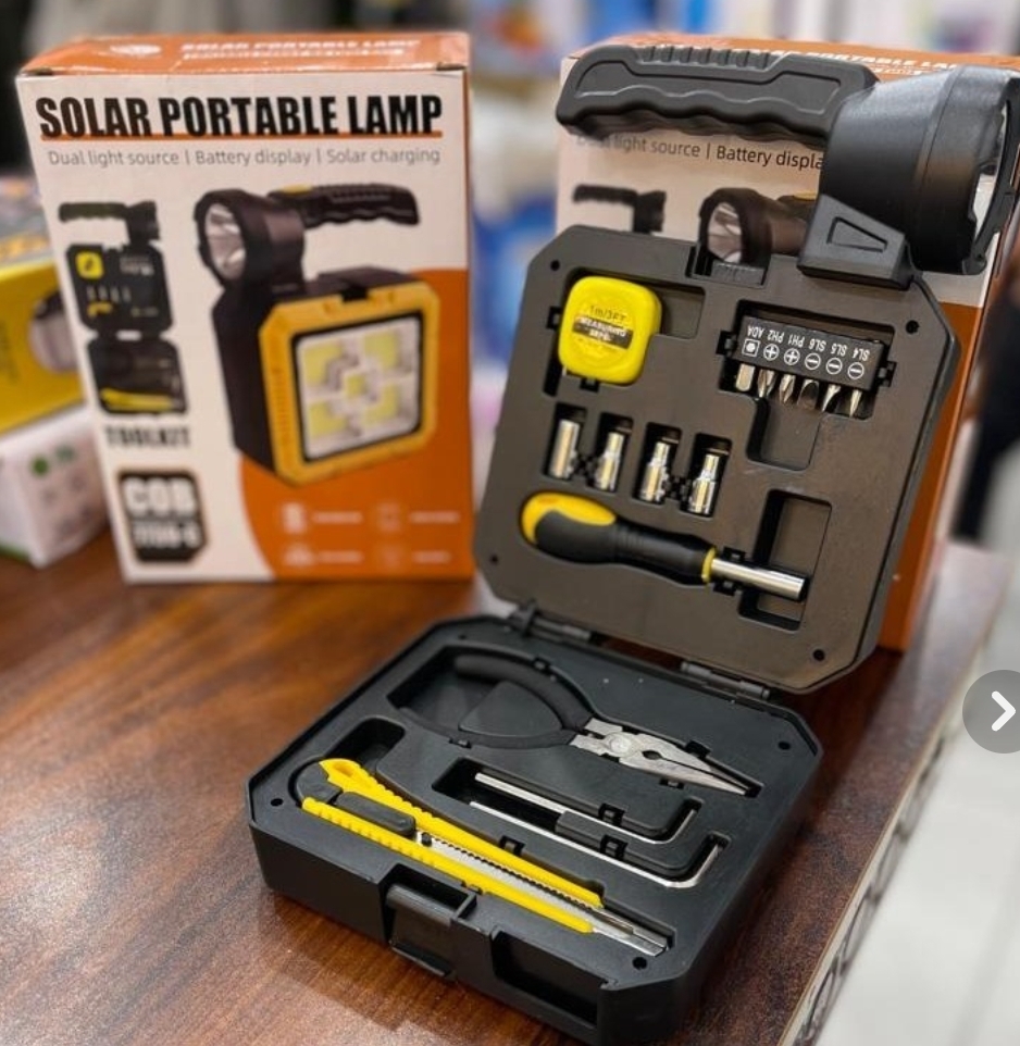 این محصول یک چراغ قوه چندکاره به نام "چراغ قوه سولار پرتابل مدل COB 7739-C" است. این گجت کاربردی ترکیبی از چراغ قوهوجعبه ابزار است و برای علاقهمندان به سفر، کمپینگ، و کارهای فنی بسیار مناسب است.