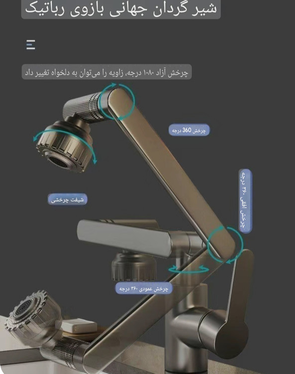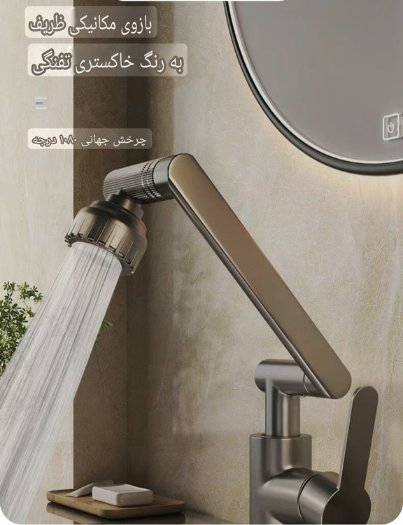 شیر آب تلسکوپی بازویی مدل واتر تپ(رنگ طوسی) (شیر متحرک 360درجه - شیر متحرک روشویی)