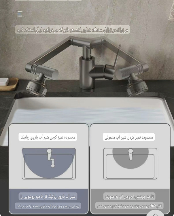 نصب روی سینک و شروع کار با دست( قابلیت چرخ 360 درجه)