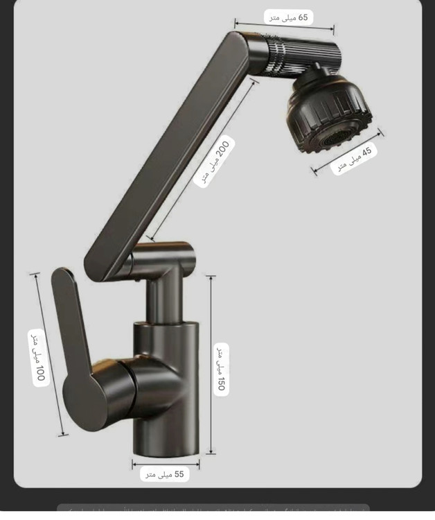 شیر آب تلسکوپی بازویی مدل واتر تپ(رنگ طوسی) (شیر متحرک 360درجه - شیر متحرک روشویی)