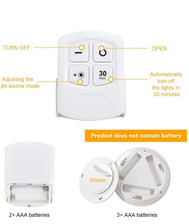چراغ اضطراری زیر کابینتی (چراغ سقفی، چراغ مخفی) ریموت دار و باطریخور 3in1 مجموعه 3 عددی