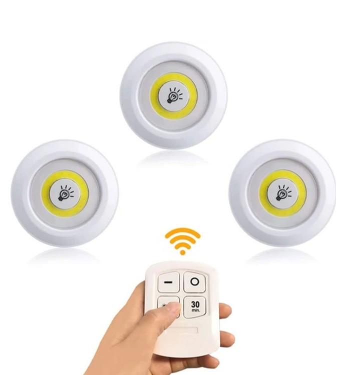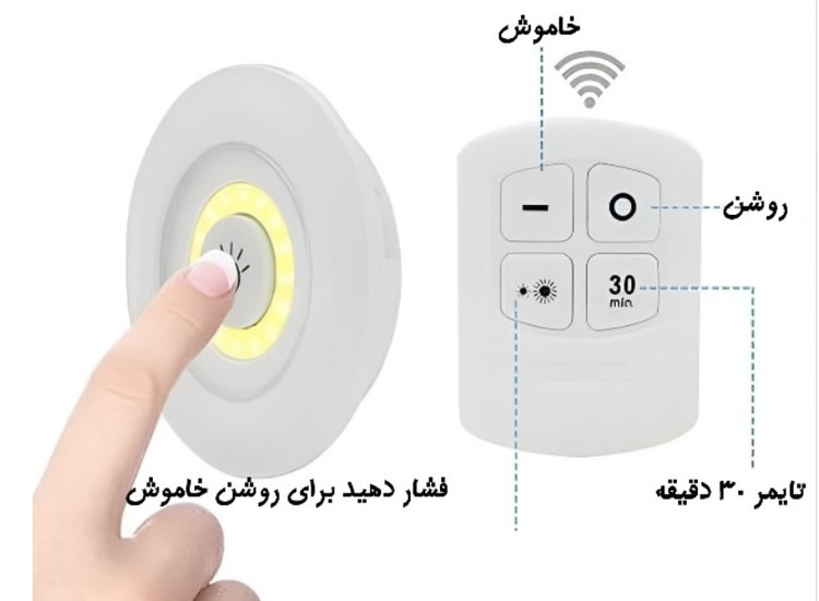 چراغ زیر کابینتی (چراغ سقفی، چراغ مخفی) کنترل دار و باطریخور 3in1 مجموعه 3 عددی