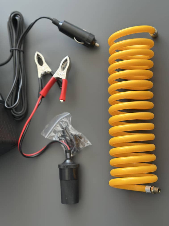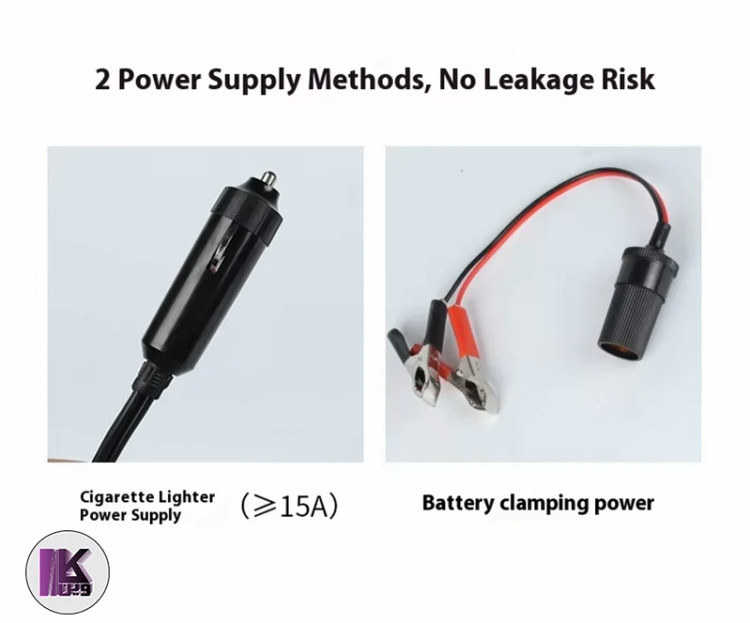همانطور که اشاره کردیم، تامین انرژی در این دستگاه با کمک باتری خودرو و جافندکی خودرو انجام میشود. این کمپرسور می تواند به شکل مستقیم به باتری متصل شود، و همچنین با اتصال به جافندکی خودرو، انرژی موردنیاز خود را تامین میکند. ولتاژ مناسب برای این دستگاه 12 ولت است و بیشتر برای خودروهای سواری مورد استفاده قرار میگیرد. از آن جایی که شارژر فندکی درون اتاق خودرو قرار دارد، نیاز به کابل برق بلندی است که بتوان دستگاه را پس از اتصال به فندکی، به خارج از کابین منتقل کرد؛ برای همین منظور یک کابل برق 2 متری برای این کمپرسور در نظر گرفته شده است.