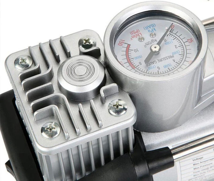 یکی دیگر از مزایای این کمپرسور وجود دو شلنگ است. یکی از شلنگها طولی 0.25 متری دارد که با توجه به کابل برق 2 متری دستگاه معمولا برای بادکردن تایرها کافی است. اما اگر احساس میکنید به شلنگ بلندتری برای این کار نیاز دارید، میتوانید از شلنگ فنری که به همراه این محصول عرضه میشود، استفاده کنید. این کمپرسور به شکل دوسیلندر طراحی شده است و میتواند در زمان مناسبی تایر خودرو را باد کند. فشار اندازهگیری شده برحسب واحدهای بار و پیاسآی روی این فشارسنج قابل مشاهده است.