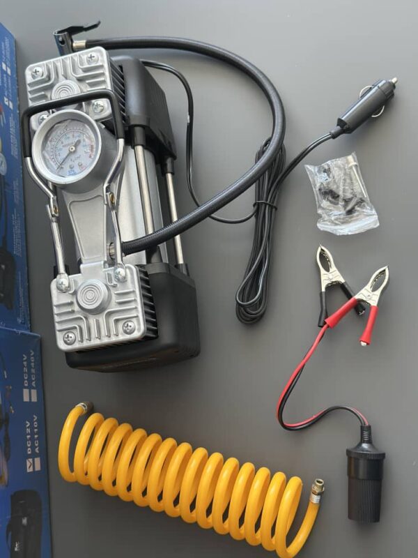 پنچر شدن تایر خودرو و کمباد شدن آن یکی از معضلاتی است که در حین رانندگی رخ میدهد. گاهی شرایط بهگونهای است که فرد نمیتواند لاستیک خودرو را تعویض کند. در این شرایط، استفاده از کمپرسور باد خودرو کمک زیادی خواهد کرد. این دستگاهها میتوانند بهشکل موقت باد لاستیک را افزایش دهند تا فرد بتواند مسافتی را با خودرو طی کرده و خود را به محلی مناسب برای تعویض لاستیک برساند. محصول فوق یکی از گونههای این کمپرسورها است که به همراه داشتن آن در خودرو در چنین مواقعی بسیار کارگشا خواهد بود از این دستگاه میتوان در مواقع و شرایط مختلفی استفاده کرد که از مهمترین آنها میتوان به کمباد شدن یا پنچرشدن تایر خودرو اشاره کرد. بادکردن وسایل بازی مانند توپ و حتی قایق بادی از دیگر مزایای این دستگاهها بهحساب میآید. دستگاه فوق یکی از انواع کمپرسورهای خودرو است که انرژی مورد نیاز خود را از باتری تامین میکند؛ از این رو میتوانید بدون نگرانی از بابت نیاز به پریز برق شهری، از این دستگاه استفاده کنید