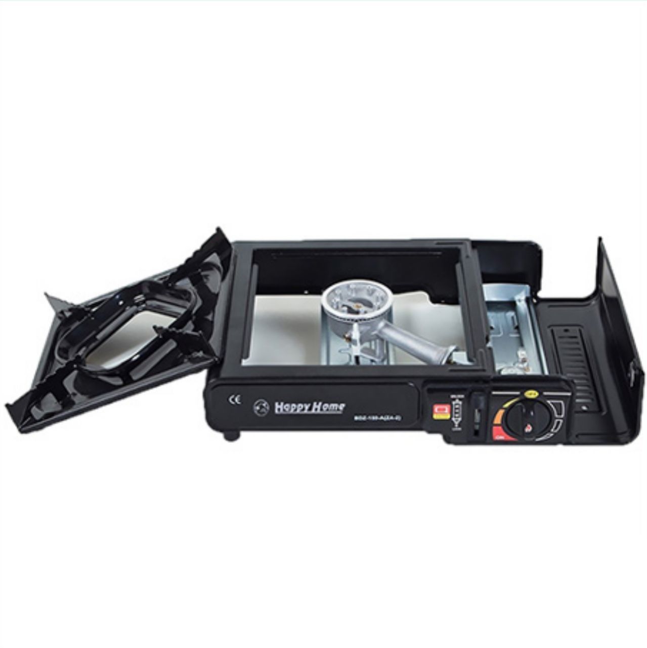 اجاق سفری هپی هوم از طراحی ساده و کاربردی برخوردار است، و با اندازهی نسبتا کوچکش انتخابی عالی برای علاقهمندان به سفر و کوهنوردی و طبیعت گردی وکمپینگ محسوب میشود. در ساخت بدنهی این محصول از فلز استفاده شده است که علاوه بر مقاومت در برابر حرارت و گرما، عمری نسبتا طولانی دارد. از ویژگیهای این مدل تعبیه یک دکمه برای کم و زیاد کردن شعله، اتصال به سیلندر گاز خانگی، اتصال به سیلندر های استوانه ای کوچک، داشتن کلید قفل محفظه سیلندر جهت ایمنی بیشتر حین استفاده و دارای فندک جهت سهولت در استفاده است. با همراه داشتن اجاق سفری هپی هوم به راحتترین شکل ممکن غذاهایی ساده و خوش طعم در طبیعت و فضای باز طبخ کنید. یکی دیگر از مصارف این اجاق برای مکانهایی میباشد که شیر گاز موجود نیست.
