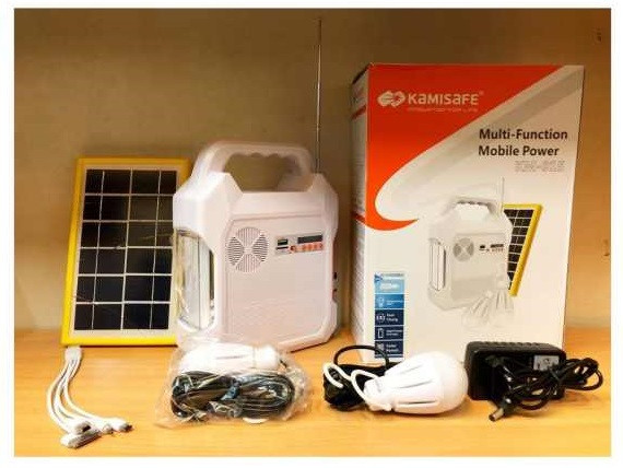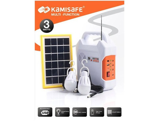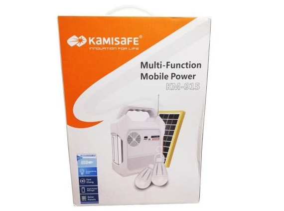 چراغ اضطراری و پاوربانک و اسپیکر Kamisafe مدل KM-915 که از تولیدات برند معتبر و شناخته شده Kamisafe می باشد. این دستگاه مجموعه کاملی برای استفاده در پیک نیک و یا استفاده در باغ و جایی که برق شهر در دسترس نیست بوده و با امکاناتی از قبیل رادیو و امکان پخش فایل های صوتی با فلش مموری و کارت حافظه SD ، باعث عدم نیاز به دستگاههای متعدد در سفر می شود . این مجموعه دارای 2 لامپ ال ای دی با سیم 3 متری می باشد که می توان فضای نسبتا" وسیعی را با آنها و با سیم های بلندشان روشن کرد .این دستگاه دارای یک صفحه خورشیدی با کیفیت جهت شارژ دستگاه در مواقع اضطراری که به برق شهر دسترسی نیست می باشد. برای شارژ موبایل و تبلت نیز می توانید از کابل رابط شارژ داخل این پک که برای موبایل های متفاوت مناسب است و اتصال به قسمت خروجی USB ، استفاده کنید.