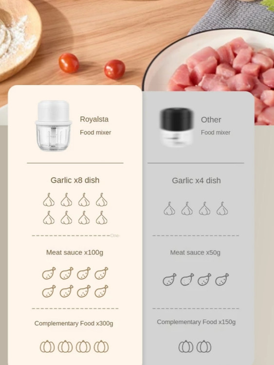 خردکن قابل حمل و شارژی ۳۰۰ میلی لیتری برند رویال استار، یکی از پرفروشترین و محبوبترین خردکن های رده کوچک و قابل حمل موجود در بازار می باشد. هدف اصلی این خردکن ها به عنوان یک دستیار همیشگی و بسیار کاربردی در آشپزی، استفاده برای مقادیر کم و کوچک مواد غذایی می باشد چرا که خردکن های بزرگ علاوه بر اینکه برای مقادیر کم، ناکارآمد هستند، شستشوی یک دستگاه بزرگ برای خرد کردن مقدار کوچکی از مواد غذایی معمولا کاری طاقت فرسا خواهد بود. همچنین ظرفیت ۳۰۰ میلی لیتری آن، این محصول را به وسیله ای کاملا قابل حمل تبدیل کرده است که می توانید حتی در سفر نیز از آن استفاده کنید. تیغه سه تایی بسیار محکم و مقاوم آن از جنس فولاد ضد زنگ بوده که به صورت بسیار موثر می تواند فرآیند خردکردن را انجام دهد. قسمتهای پلاستیکی این محصول از نوع food grade ( مواد مجاز مورد استفاده در تماس با مواد غذایی) و فاقد هرگونه BPA میباشد و جنس ظرف آن از شیشه بسیار با کیفیت و شفاف میباشد. موتور بسیار قدرتمند و تیغه های بسیار تیز آن میتواند در خردکن سیر، انواع ادویه ها و چاشنی ها، انواع مغزها و آجیل ها، سبزیجات، گوشت، یخ و ... مورد استفاده قرار گیرد. همچنین شما می توانید از آن برای پخت و پزهای روزانه، تهیه غذای کمکی کودکان و یا تهیه انواع اسموتی ها و... استفاده کنید. طراحی بسیار زیبای این خردکن در کنار کاربرد بسیار زیاد آن و همچنین سهولت استفاده از آن (تنها با فشردن یک کلید)، آن را به یکی از لوازم ضروری آشپزخانه تبدیل کرده است.