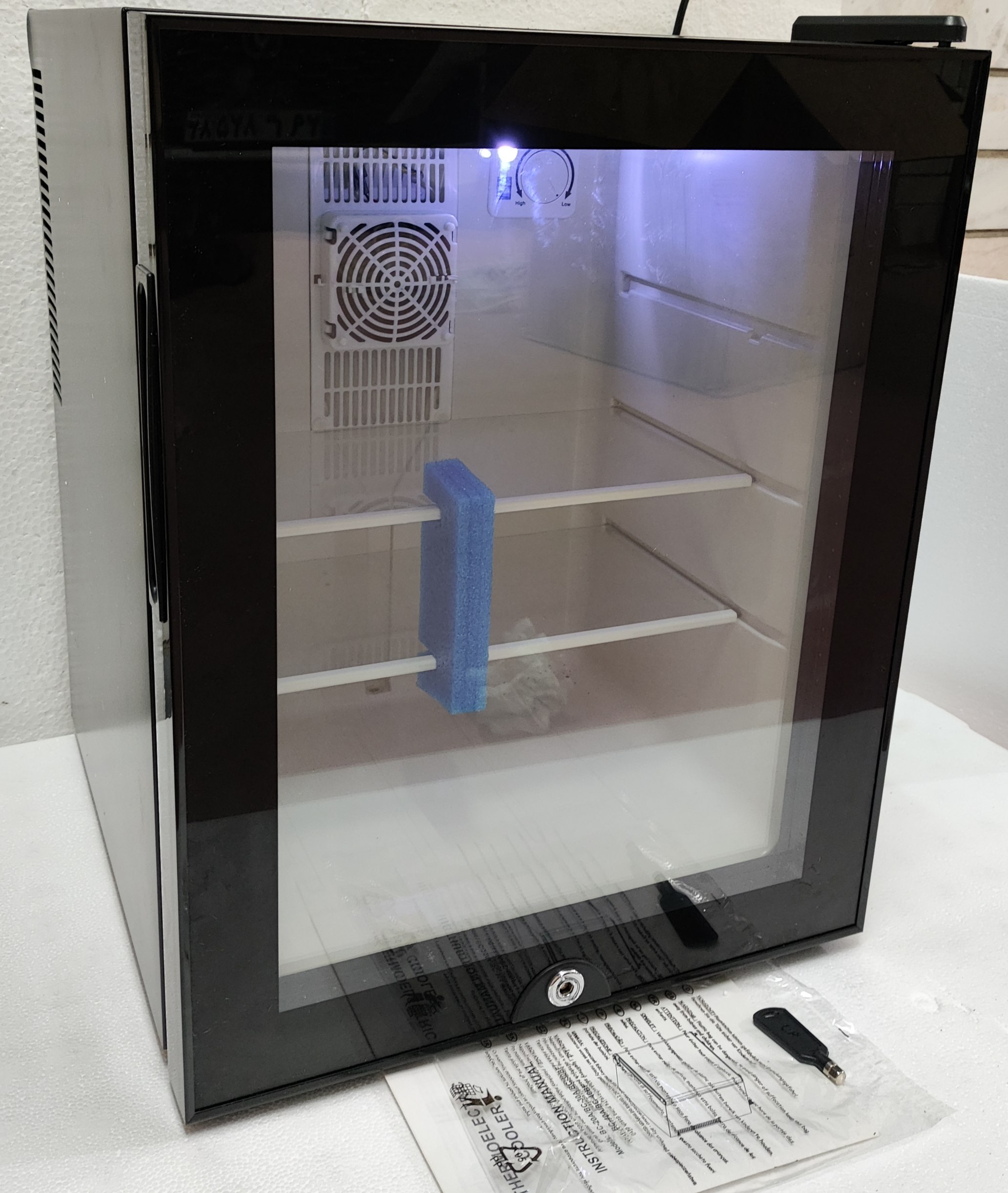 * ویژگیهای اضافی: درب شیشهای نشکن دوجداره، قفل درب با کلید، دکمه تنظیم دما و لامپ LED داخلی