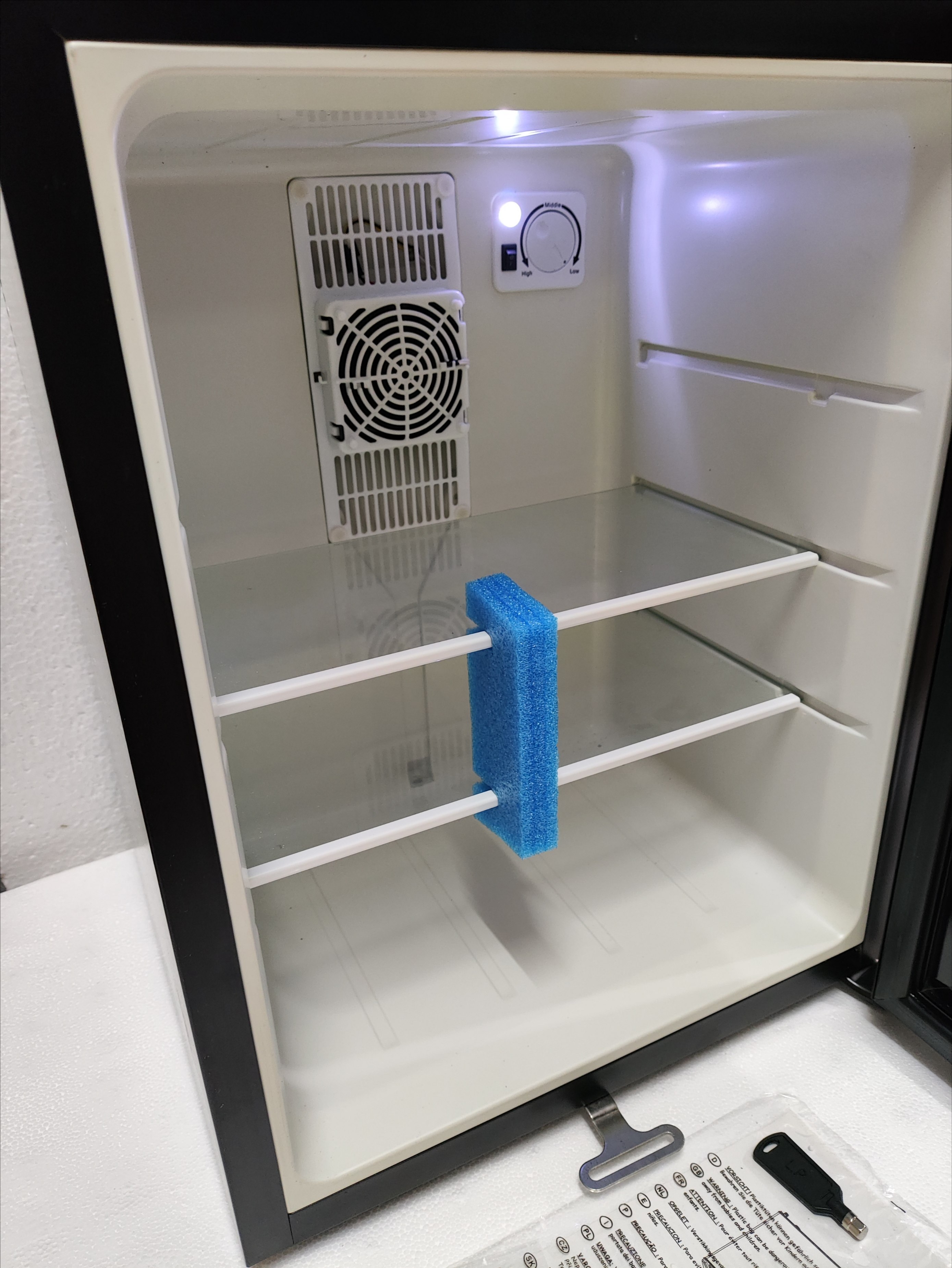 * مصرف انرژی پایین: با توان مصرفی تنها ۵۵ وات، این مینیبار بسیار کممصرف و اقتصادی است.