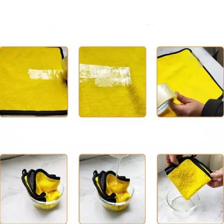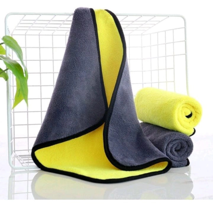 دستمال نظافت حوله ای میکروفایبر دو رو، از الیاف با کیفیت میکروفایبر و نانو ساخته شده است که قدرت بسیار بالایی در جذب، آبگیری و پاک کنندگی دارد. و ضمنا بسیار لطیف است و روی سطوح خراش ایجاد نمی کند و بدون پرز بوده و می تواند دستمالی حرفه ای، نرم و لطیف برای تمیز کردن آلودگی های خودرو، مناسب کارواش، ظروف آشپزخانه و حوله دم دستی ضخیم شما باشد. از این محصول میتوان برای شستشو، خشک کردن، پولیش کاری و برق انداختن بدنهی خودرو و آب گیری سطوح حساس و دارای رنگ مانند بدنه خودرو و ظروف حساس استفاده نمود. حوله های میکروفایبر در مصارف خانگی نیز بسیار پرکاربرد هستند. شستشوی آسان و بی دردسر این محصول حتی با آب سرد نیز انجام میپذیرد و از ویژگیهای مثبت آن به شمار میآید. توصیهی تیم کارشناسی تولید کننده بر این است که برای شستن این دستمال ها به هیچ وجه از نرم کننده ی پارچه استفاده نکنید تا در هنگام استفاده مکرر بدون تغییر شکل باقی بماند. این محصول همانطور که در تصویر مشاهده میکنید از دولایهی به هم چسبیده با دو رنگ متفاوت تولید شده است.