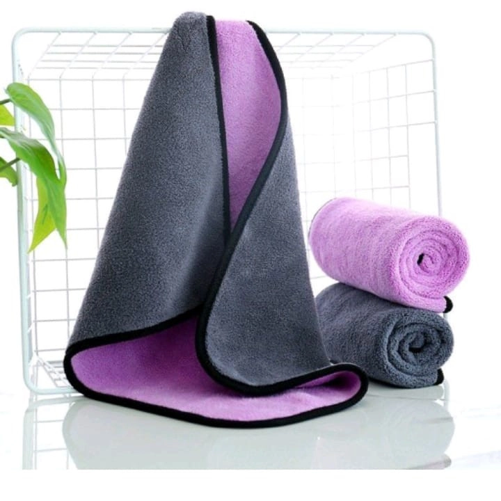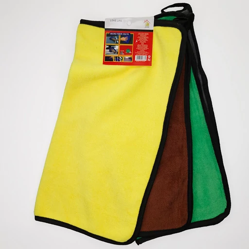 دستمال نظافت حوله ای میکروفایبر دو رو، از الیاف با کیفیت میکروفایبر و نانو ساخته شده است که قدرت بسیار بالایی در جذب، آبگیری و پاک کنندگی دارد. و ضمنا بسیار لطیف است و روی سطوح خراش ایجاد نمی کند و بدون پرز بوده و می تواند دستمالی حرفه ای، نرم و لطیف برای تمیز کردن آلودگی های خودرو، مناسب کارواش، ظروف آشپزخانه و حوله دم دستی ضخیم شما باشد. از این محصول میتوان برای شستشو، خشک کردن، پولیش کاری و برق انداختن بدنهی خودرو و آب گیری سطوح حساس و دارای رنگ مانند بدنه خودرو و ظروف حساس استفاده نمود. حوله های میکروفایبر در مصارف خانگی نیز بسیار پرکاربرد هستند. شستشوی آسان و بی دردسر این محصول حتی با آب سرد نیز انجام میپذیرد و از ویژگیهای مثبت آن به شمار میآید. توصیهی تیم کارشناسی تولید کننده بر این است که برای شستن این دستمال ها به هیچ وجه از نرم کننده ی پارچه استفاده نکنید تا در هنگام استفاده مکرر بدون تغییر شکل باقی بماند. این محصول همانطور که در تصویر مشاهده میکنید از دولایهی به هم چسبیده با دو رنگ متفاوت تولید شده است.