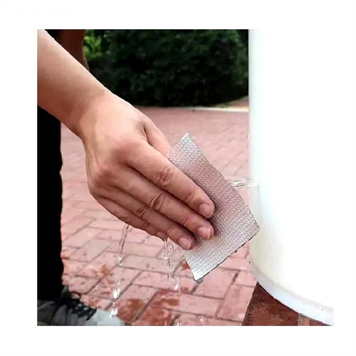 چسب آب بندی نواری نمونه ای جدید از ابزار پوشش محسوب می شود که دارای سطح رویین شبکه ای به رنگ نقره ای می باشد ، خصوصیتی که زیبایی ظاهری را برای آن تا حدی پدید آورده ، به طوری که بتوان از کالا در بیشتر موقعیت های مکانی بدون نگرانی از تخریب شکل ظاهری استفاده نمود . سطح زیرین محصول ، لایه ای چسبی وجود دارد که چسبندگی بسیار خوبی را دارا است ، به طوری که به اغلب سطوح می توان آن را چسباند و استفاده کرد ، البته با دقت به این موضوع که بهترین عملکرد برای کالا روی سطح یکدست (مسطح) ، بدون برجستگی است . پهنای چسب درزگیر ، 5 سانتی متر با طول 5 متر می باشد که می توانید از آن برای پوشش ترک سطوح مختلف استفاده کنید ، کافی است سطح مورد نظر را تمیز کنید و در نهایت برچسب را روی منافذ ، ترک و یا شیار مورد نظر به خوبی بچسبانید به طوری که کامل آن پوشش دهد . برچسب آب بندی ، مقاومت لازم در برابر آب را نیز دارد بنابراین کمترین محدودیت ممکن در استفاده از آن را خواهید داشت .