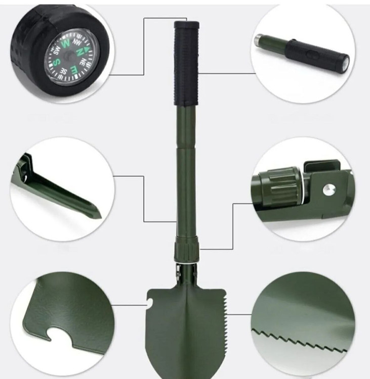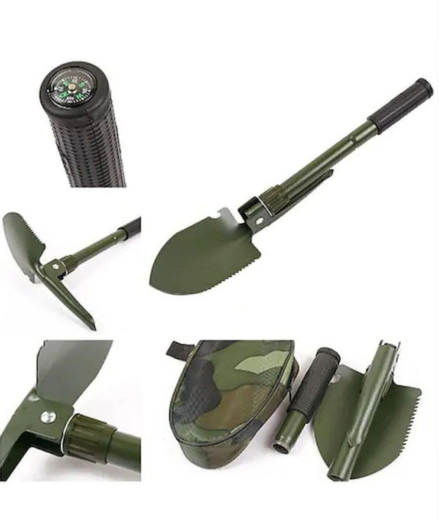 اگر بخواهیم به جزئیات بیشتری از این بیلچه بپردازیم، باید به طراحی هوشمندانه و مقاوم آن اشاره کنیم. این ابزار از جنس فلزی باکیفیت ساخته شده که تحمل فشار و ضربههای شدید را دارد. رنگ ارتشی آن نیز ظاهری جذاب و مقاوم به آن بخشیده است که بهویژه برای طبیعتگردها جذاب است.