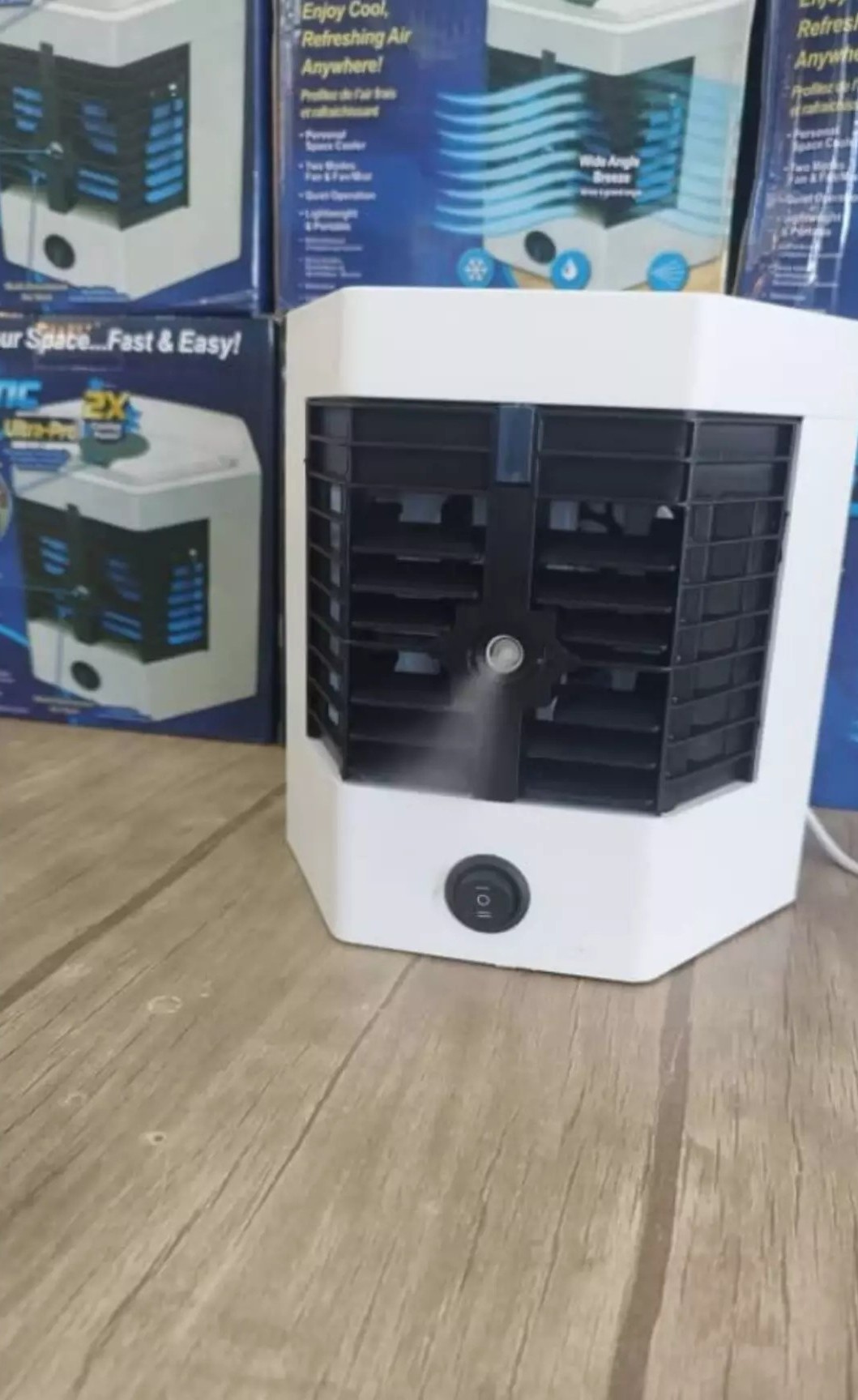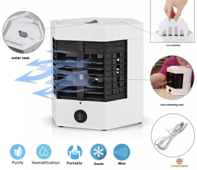 این کولر رومیزی در کمپهای تفریح و برای مسافرت کاربرد دارد و به راحتی یک چادر را خنک میکند .