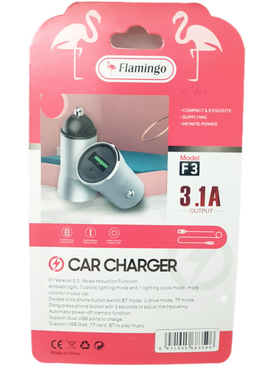 شارژر فندکی Flamingo مدل F3 همراه با کابل تایپ سی، دارای یک پورت خروجی با شدت جریان خروجی کلی 3.1 آمپر بصورت فست شارژ می باشد. و مناسب برای انواع گوشی های موبایل و تبلت، MP4 ،PSP ،GPS، گیرنده های بلوتوث است. و برای انواع پاوربانک و دوربین های عکاسی، زمانیکه در خودرو در هنگام سفر یا خارج منزل، زمانیکه دسترسی به پریز برق تقریبا ناممکن بوده باشد این شاژر ماشینی به کمک شما خواهد آمد و با تغذیه از برق خوردرو از طریق جایگاه فندک ماشین و یک کابل USB میتوانید آنها را شارژ کنید.
