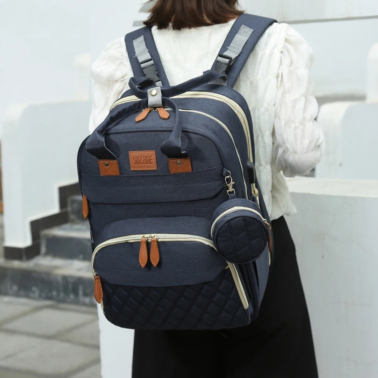 کوله پشتی (کیف نوزاد) وارداتی لوازم کودک و نوزاد SUNSHINE تخت خواب شو با پشه بند (رنگ سورمه ای)