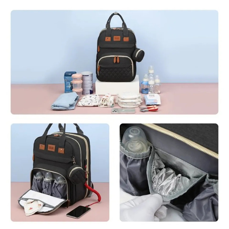 این کوله پشتی بسیار جادار بوده و دارای جیب های متعدد است و برای هر کدام از وسایل نوزاد محل مخصوصی در نظر گرفته شده است. به طور مثال جیب جلویی کوله پشتی دارای 3 جای عایق است که می توانید شیشه شیر را در آن ها نگه داری کنید و بدین ترتیب دمای مایعات داخل شیشه شیر حفظ می گردد و از سرد و گرم شدن آن جلوگیری خواهد کرد.