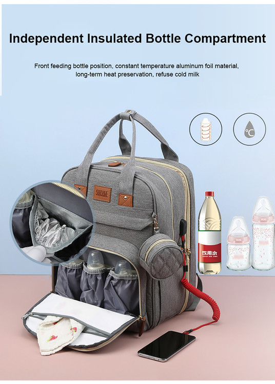 - جیب های عایق موجود در جیب جلوی کوله مخصوص گرم نگه داشتن شیشه شیر