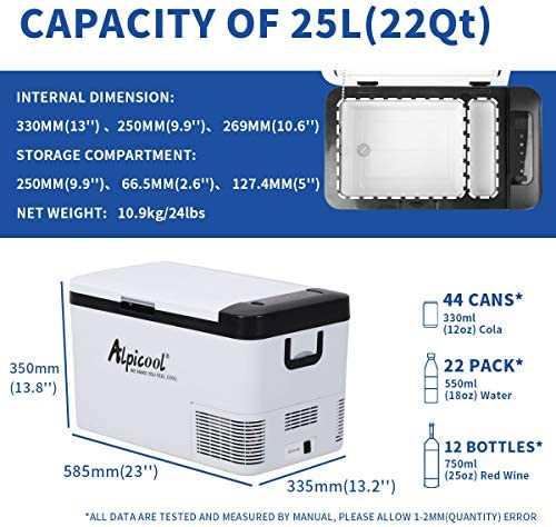 این محصول با توان ورودی 45 وات، دستگاهی پر قدرت و پر کاربرد در طول سفر به حساب می آید. یخچال فریزر آلپیکول قابلیت تغذیه با برق شهر (AC) در محدوده 100 تا 240 ولت را داشته و در صورت استفاده از برق خودرو (DC) با ولتاژ 12 و 24 ولت کار می کند. در ضمن کابل اتصال به برق شهر و فندک خودرو نیز همراه با این دستگاه ارائه شده است. ظرفیت این یخچال 25 لیتر بوده و قابلیت قرارگیری 44 قوطی نوشابه 330 میلی لیتری یا 22 بطری 500 میلی لیتری و یا 12 بطری 700 میلی لیتری را دارد.