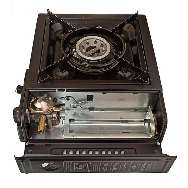 ( توجه داشته باشید که برای ایمنی بیشتر ، وقتی که شیر گاز اجاق باز باشد، اهرم دیگر بالا نمیرود و کپسول خارج نمیشود. )