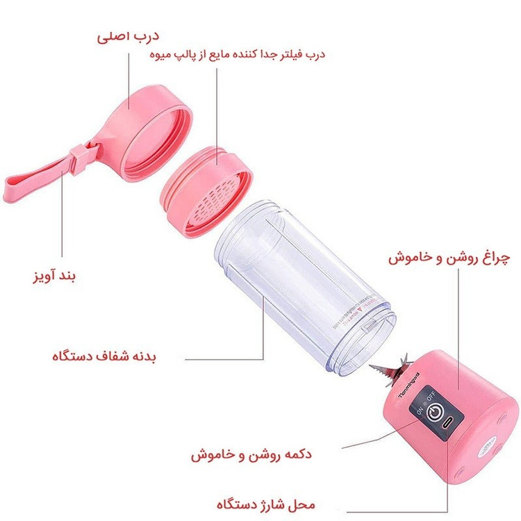 مخلوط کن شارژی قابل حمل juice cup بهترین انتخاب برای افرادی است که به دنبال یک میکسر پرقدرت برای درست کردن اسموتی و شیک های ورزشی هستند. این محصول دارای یک موتور 3.6V با سرعت چرخش 15000 تا 22000 دور در دقیقه و تیغه 6 پره استیل ضد زنگ بسیار قوی می باشد که انواع شیک های میوه ای، پودر های بدنسازی، سبزیجات، دانه های آجیلی و ... را به راحتی در چند ثانیه آماده می کند. این بلندر شارژی دارای شش تیغه فلزی پرقدرت بوده که قابلیت خرد کردن انواع مواد غذایی مانند میوه ها را داشته و دور موتور و استحکام تیغه های استیل ضد زنگ آن، قابلیت خرد کردن یخ را نیز به آن می دهد (البته بدلیل سختی بالای یخ امکان تضعیف و خرابی میکسر وجود دارد). ورزشکاران رشته های مختلف به خصوص بدنسازی و فیتنس می توانند برای تهیه انواع اسموتی های رژیمی و شیک های پروتئینی از این مخلوط کن پرتابل هم در باشگاه و هم در منزل استفاده کنند. جنس بدنه این مخلوط کن قابل حمل تیغه فلزی، از پلاستیک(PVC) بوده که خیال شما را از بابت سلامتی مواد بکار رفته راحت می کند. موتور میکسر پرتابل جویس کاپ قابلیت جداسازی از بدنه اصلی آن را داشته و امکان شستشوی راحت را برای شما فراهم می سازد. همچنین درب پیچی آن کاملا محکم بسته شده و هیچگونه نشتی نخواهد داشت. بند تعبیه شده در این مخلوط کن هم به منظور حمل آسان تر شیکر به کار می رود. ورزشکاران می توانند برای تهیه اسموتی ورزشی، شیک های پروتئینی و یا حتی درست کردن اوت میل و پنکیک پروتئینی از این مخلوط کن قابل حمل شارژی استفاده نمایند. همچنین از این میکسر می توان به عنوان غذاساز کودک در سفر یا مهمانی استفاده کرد. قدرت بالای این شیکر تیغه فلزی به حدی است که کاملا مواد غذایی را مخلوط کرده و بر اثر استفاده مداوم هیچ آسیبی به تیغه های آن نخواهد رسید.