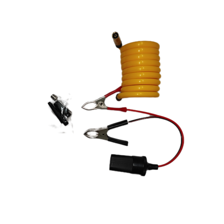 همانطور که اشاره کردیم، تامین انرژی در این دستگاه با کمک باتری خودرو و جافندکی خودرو انجام میشود. این کمپرسور می تواند به شکل مستقیم به باتری متصل شود، و همچنین با اتصال به جافندکی خودرو، انرژی موردنیاز خود را تامین میکند. ولتاژ مناسب برای این دستگاه 12 ولت است و بیشتر برای خودروهای سواری مورد استفاده قرار میگیرد. از آن جایی که شارژر فندکی درون اتاق خودرو قرار دارد، نیاز به کابل برق بلندی است که بتوان دستگاه را پس از اتصال به فندکی، به خارج از کابین منتقل کرد؛ برای همین منظور یک کابل برق 2 متری برای این کمپرسور در نظر گرفته شده است.