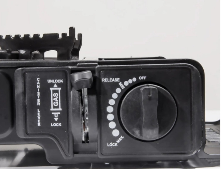 ( توجه داشته باشید که برای ایمنی بیشتر ، وقتی که شیر گاز اجاق باز باشد، اهرم دیگر بالا نمیرود و کپسول خارج نمیشود. )