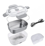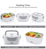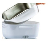 ظرف غذای برقی لانچ باکس محصولی بسیار کاربردی و جالب است که در زمانی کوتاه غذا را گرم می کند بدون آنکه بسوزد یا بوی بد بگیرد. کاربرد اصلی این ظرف غذای حرارتی برای کارمندان یا کسانی است که فرصت کافی برای ماندن در آشپزخانه را ندارند. ظرف خورشت یا سالاد، قاشق پلاستیکی و کابل برق از متعلقات همراه این محصول هستند. جنس بدنه آن از پلاستیک درجه یک می باشد وجنس ظرف داخلی از استیل درجه یک که با خیال راحت می توانید از آن استفاده کنید و فاقد BPA میباشد. گنجایش آن 1.5L است که برای غذای یک نفر مناسب است. درون بدنه اصلی امکان قرار دادن ظرف خورشت نیز قرار داده شده است. ولتاژ دستگاه 220V با فرکانس 50Hz و توان 40W می باشد. این محصول مناسب استفاده خانواده ها، ادارات، شرکت ها و مورد استفاده در مسافرت ها برای گرم کردن سریع غذا و..... می باشد. درب ظرف از 4 طرف به صورت محکم روی بدنه قفل شده و دستگیره روی درب به راحتی امکان حمل ظرف را فراهم میکند.