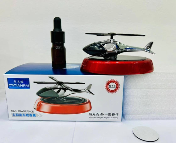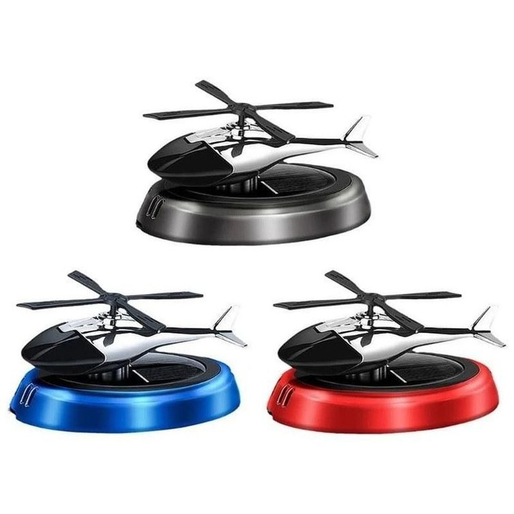 خوشبو کننده خورشیدی مدل هلیکوپتر علاوه بر خوشبوکننده بودن یک وسیله تزئینی باحال و جذاب برای داخل خودرو میباشد و این محصول با قرار گرفت در زیر نور خورشید به چرخش در میآید و بوی خوشایندی رو داخل کابین پخش میکند. راحیه این محصول قابل شارژ میباشد و شما میتوانید به صورت جداگانه هر ادکلن و راحیه خوشبو و ملایم رو برای این محصول استفاده کنید. انرژی محرک این خوشبو کننده خودرو خورشیدی از خورشید تولید می شود و نیاز به شارژ ندارد.