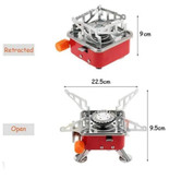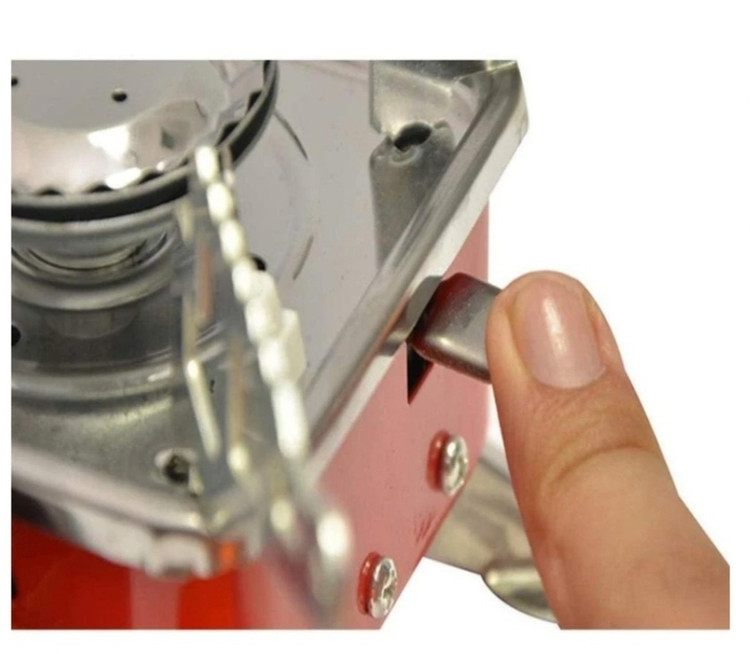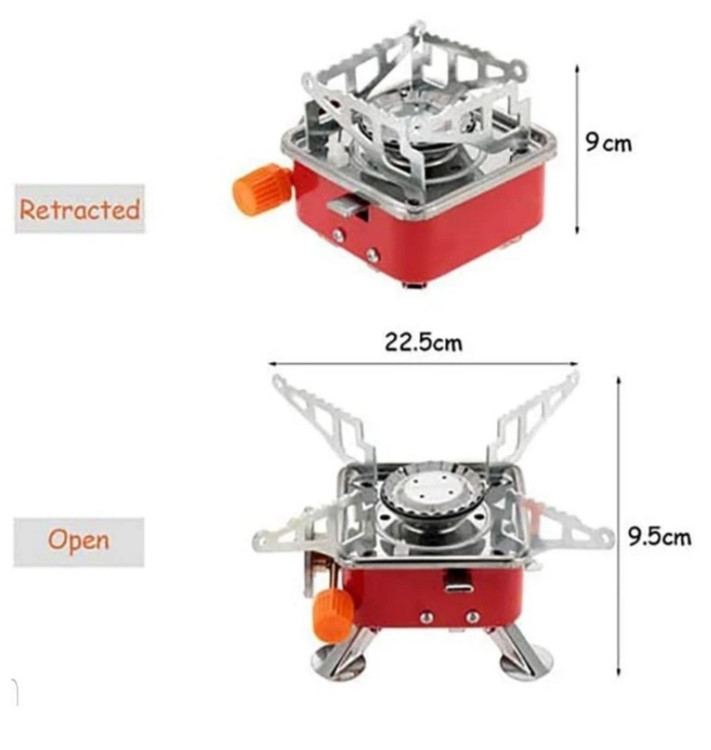 اجاق گاز کوه نوردی با ویژگی تاشویی که دارد به راحتی قابل حمل بوده و در مکان هایی مثل کوه بدون وزن اضافی و دست و پا گیر بودن به راحتی می توانید آن را حمل کنید. ابعاد این دستگاه در حالت بسته 9.5cm * 9.5cm * 9cm و در حالت باز 16cm * 16cm * 10cmمی باشد. نوع عملکرد این اجاق گازی است و با کپسول های قابل حمل کوچک استوانه ای که مخصوص این مدل گاز ها تعبیه شده است کار می کند. پایه های این اجاق نیز تاشو بوده و هرکجا لازم داشتید می توانید آن ها را باز کنید. به همراه این گاز یک کیف برزنتی کوچک و با کیفیت جهت حمل راحت تر اجاق ارسال می گردد. جنس بدنه گاز استیل ضد زنگ و آلومینیوم می باشد و علاوه بر این مجهز به فندک اهرمی هم هست پس بنابراین هیچ نیازی به کبریت یا فندک مجزا هم نخواهید داشت. پایه و بازوهای تاشو این اجاق فضای کم تری را اشغال می نماید. نازل کنترل فشار گاز به شما امکان تنظیم میزان شعله اجاق را می دهد و همانطور که گفته شد برای روشن کردن اجاق نیز هیچ نیازی به کبریت یا فندک مجزا ندارید و فقط کافیست شعله گاز را باز نموده و اهرم فندکی را بزنید تا با ایجاد جرقه گاز روشن شود. این اجاق بین کوه نوردان و کسانی که زیاد مسافرت و کمپین می روند بسیار محبوب است زیرا در حالت بسته شده بسیار جمع و جور است و وزن بسیار سبکی نیز دارد. با توجه به حالت بازشو بودن بازوهای روی گاز امکان قرار دادن قابلمه های نسبتاً بزرگ نیز بر روی آن وجود دارد پس یک محصول همه چیز تمام برای استفاده خارج از منزل است.