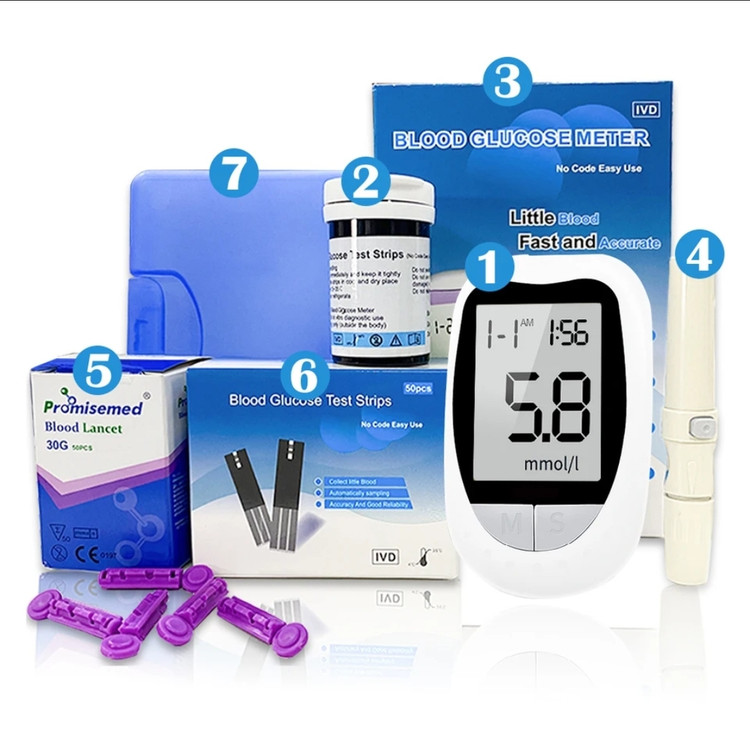 دستگاه تست قند خون (گلوکومتر) + ۵۰ نوار تست + ۳۰ سوزن + قلم سوزن+کیف نگهدارنده