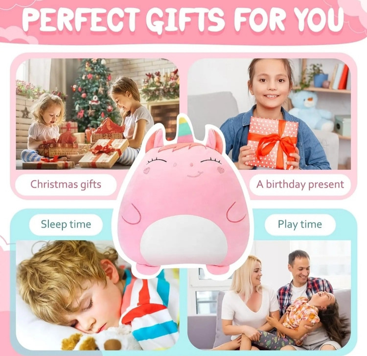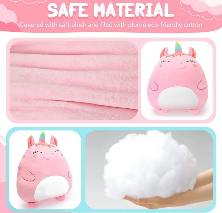 عروسک بالشتی مدل یونیکورن, یک انتخاب بسیار جذاب و مناسب برای کودکان شما می باشد. در قسمت پشت عروسک یک زیپ قرار دارد که میتوان داخل عروسک پتو در سایز کوچک قرار داد. از این عروسک میتوانید بعنوان بالشت استفاده کنید و زمانیکه نیاز به پتو داشتید, پتو را خارج کرده و از عروسک بعنوان بالشت و هم از پتوی آن استفاده نمایید.
