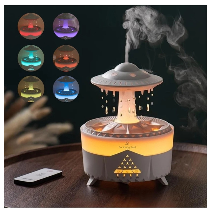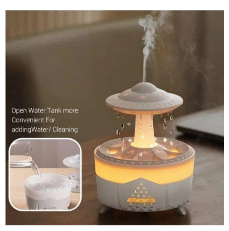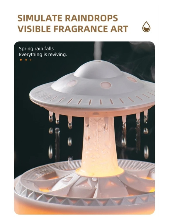 دستگاه بخور سرد و چراغ خواب شبیه ساز باران قارچی (طرح بشقاب پرنده)