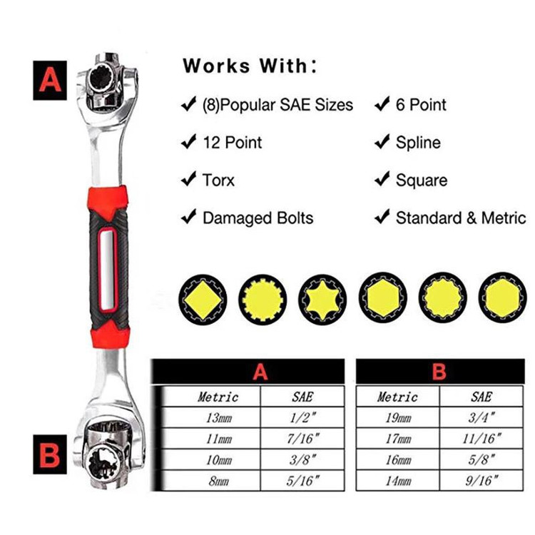 این آچار همه کاره 360 درجه همانند آچار فرانسه که تمامی مهره های موجود را می تواند باز کند براحتی قابل استفاده است و می تواند علاوه بر مهره های معمولی کلیه پیچ هایی باشکلهای مختلف را نیز باز کند.هرکجا که چیزی نیاز به باز شدن داشته باشد این آچار می تواند کارامد باشد.همچنین این آچار کار در زاویه 45 درجه و چرخش 360 درجه ی آچار راحتی هرچه بیشتر و تسریع امور تعمیرات را برای شما فراهم میکند. با انتخاب بین اندازه های مختلف، فورا ابزار مورد نیاز برای کار را خواهید داشت. آچار همه کاره 360 درجه دارای دسته لاستیکی ضد لغزش است. این یک آچار چند منظوره است که می تواند برای تعمیرات خودرو، تعمیر و نگهداری برق، تعمیرات اورژانس خانه و مبلمان و غیره استفاده شود.از باز کردن درب نوشابه گرفته تا پیچیدن مهره چرخ ماشین.با این آچار می توانید هر چیزی که میخواهید را به راحتی هر چه تمام تر باز کنید.از شیر آب و شوفاژ گرفته تا مهره های خیلی ریز.با این وسیله دیگر شما نیاز به حمل و نگهداری آچار های دیگر ندارید. جنس کالا: استیل مقاوم و پلاستیک سایر توضیحات :چرخش 360 درجه، قابل استفاده در زاویه 45 درجه دسته ضد لغزش دارای 8 سری چرخشی در سایزهای 19x17x16x14x13x11x10x8