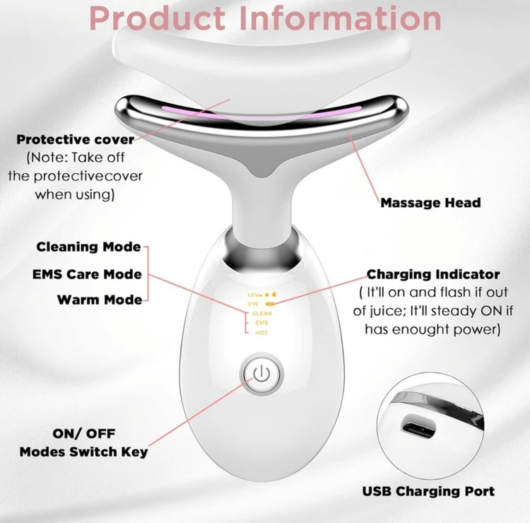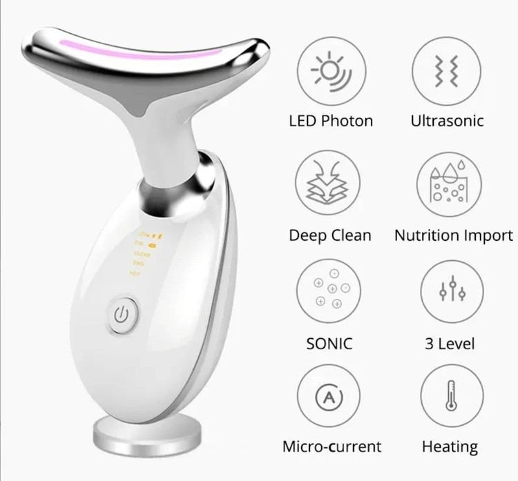 یک دستگاه هوشمند چند منظوره است که با عملکرد نور درمانی و ایجاد پالس الکتریکی به رفع غبغب و کاهش چین و چروک و همچنین رفع لک های پوست کمک می نماید. این ماساژور صورت غبغب را از بین می برد چین و چروک ، خطوط ریز را کاهش می دهد و از ایجاد علائم پیری پوست جلوگیری می کند. دستگاه ماساژور حرارتی با استفاده از فناوری IPL ، تحریک الکتریکی و ایجاد ویبره عضلات پوست را سفت می کند و باعث لیفت صورت می شود و فرم صورت را به خوبی اصلاح می نماید.