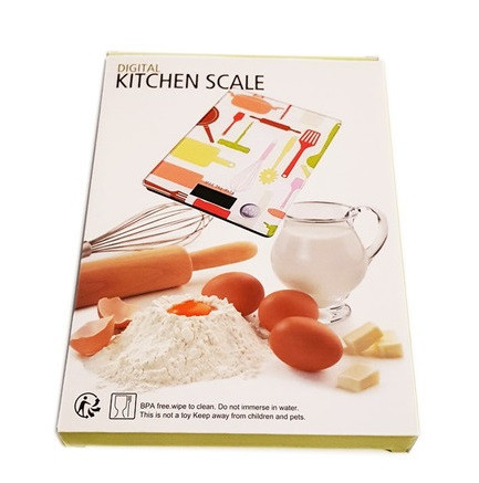 برند KITCHEN SCALE از تولید کنندگان معتبر و شناخته شده ترازوهای دیجیتال حمامی و آشپزخانه ای می باشد. محصولات این برند از تنوع و کیفیت بسیار بالایی برخوردار بوده و نیاز شما به این ابزار اندازه گیری وزن را به خوبی مرتفع می سازند. ترازوی آشپزخانه شیشه ای مدل KITCHEN SCALE صفحه ای مستطیلی و صاف و صیقلی به ابعاد 15×21 سانتی متر داشته و حدود 2 سانتی متر ارتفاع دارند. این ترازوها قابلیت اندازه گیری وزن در دو واحد کیلوگرم/گرم و پاوند/اونس و تا حداکثر وزن 5 کیلوگرم و با دقت 1 گرم را دارد. صفحه نمایشگر واضح و بزرگ این ترازو امکان دیده شدن راحت عدد نمایش داده شده را به شما می دهد. همچنین می توانید با استفاده از قابلیت TARE وزن ظروف یا مواد روی ترازو را صفر کرده و نسبت به اندازه گیری اقدام نمایید. این ترازو به سیستم خاموش شدن خودکار و نشانگر وزن بالاتر از 5 کیلوگرم مجهز است. برای روشن شدن نیاز به یک ضربه کوچک دارد که از یک عدد باطری سکه ای تغذیه میکند.
