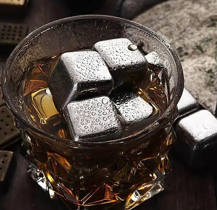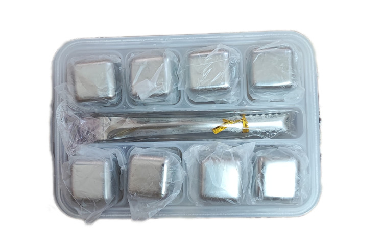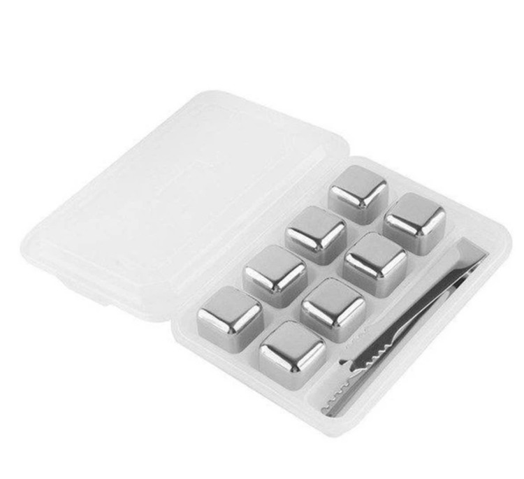 یخ مصنوعی استیل ۸ عددی مکعبی وارداتی به همراه انبر و جعبه نگهدارنده