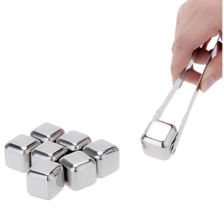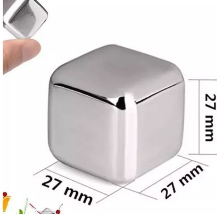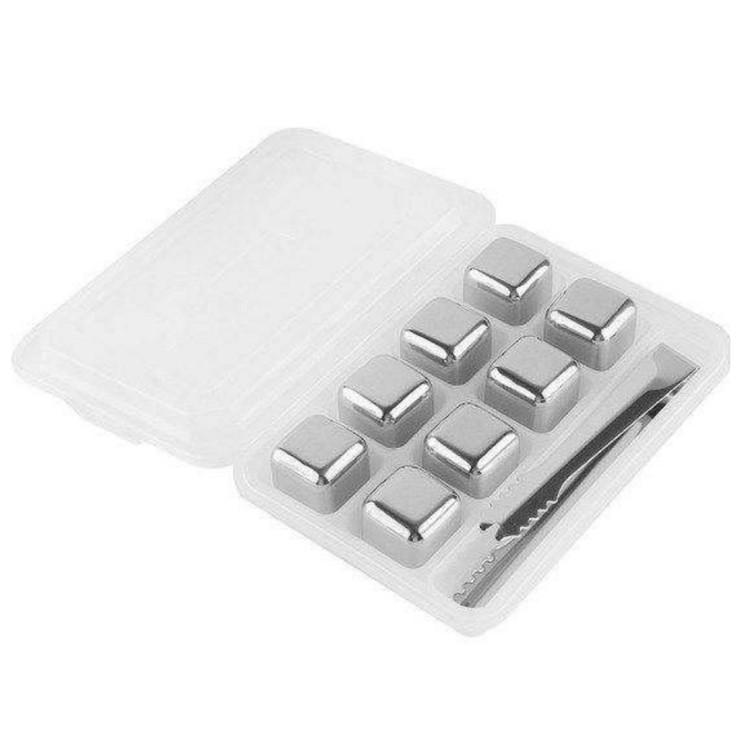 یخ مصنوعی استیل ۸ عددی مکعبی وارداتی+همراه انبر و جعبه نگهدارنده