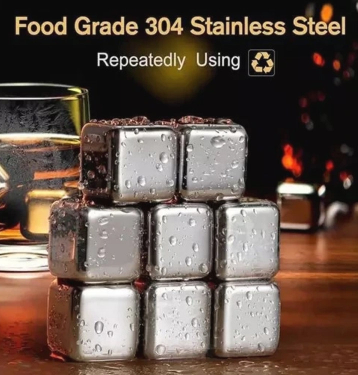 قالب یخ مکعبی استیل در بسته بندی 8 عددی وسیله ای کاربردی و جدید برای خنک کردن انواع نوشیدنی هاست. یخ های مکعبی از جنس استیل ضد زنگ هستند که داخل آن از آب و مایع خنک کننده پر شده است. کافیست حبه یخ های استیل را به مدت 2 ساعت درون فریزر قرار دهید تا مایع درون آن یخ زده و بعد داخل لیوان نوشیدنی خود بیاندازید. ویژگی اصلی این مکعب های استیل حفظ کردن طعم مایعات است که بدون تغییر در طعم و رنگ ، نوشیدنی شما را سرد خواهد کرد.