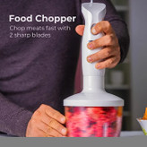 گوشت کوب یکی از محصولاتی جمع و جور و دم دستی است که می تواند همزمان کار چند وسیله را انجام دهد. امروزه با رواج زندگی آپارتمان نشینی نیاز به محصولات جمع و جوری که جای زیادی نمی گیرند بیش از پیش احساس می شود، در واقع با خرید گوشت کوب علاوه بر صرفه جویی در هزینه های خود، در فضای خانه خود نیز صرفه جویی می کنید! شرکت جیپاس یکی از برندهای آشنا برای ما ایرانیان است. گوشت کوب چهار کاره جیپاس مدل GHB 6144 علاوه بر یک گوشت کوب، کار خرد کن، مخلوط کن و همزن را نیز برای شما انجام می دهد. قسمت دسته و بدنه گوشت کوب از جنس پلاستیک ABS مرغوب ساخته شده است و میله و تیغه های آن از جنس فولاد ضد زنگ هستند و قابلیت شستشو در ماشین ظرفشویی را دارند. به همراه این محصول یک میله همزن وجود دارد که برای هم زدن سس و یا مایعات و یا مثلا در مراحل تهیه ی یک کیک به کار می آید. یک ظرف به حجم 600 سی سی با تیغه خرد کن نیز به همراه این دستگاه وجود دارد که مخصوص خرد کردن مواد است. و همچنین یک عدد بشر با حجم 500 سی سی جهت استفاده به عنوان مخلوط کن این دستگاه را همراهی می کند. توان این دستگاه 200 وات واقعی است که به راحتی می تواند هر چهار عمل خرد کردن، مخلوط کردن، همزدن و له کردن را انجام دهد. سرعت این دستگاه تک سرعته است. در یک کلام این دستگاه چهار کاره با قیمت زیر دو میلیون، کار چهار دستگاه چند میلیونی را انجام می دهد و با طراحی زیبایی که دارد قطعا شما را مجذوب خودش خواهد کرد!