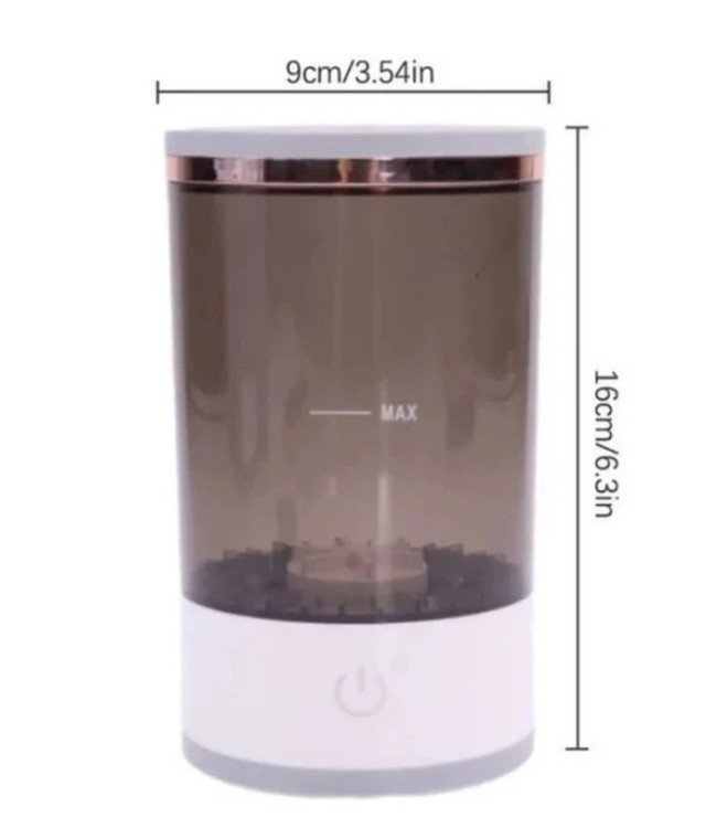 این دستگاه با کابل usb متصل به آن امکان استفاده ان را در هر جا با پاور بانک، لپ تاپ ،کلگی موبایل و سایر پورت های usb را فراهم میکند و مناسب برای استفاده در سالن های آرایش و خانه است. این دستگاه شبیه به دستگاه لباس شویی و مینی واش ها عمل میکند و با پره موجود در آن که با سرعت بسیار بالای به چرخش در می آید بوسلیه آب و مایع تمیز کننده در آن ،براش ها را با سرعت بسیار بالا شستشو میدهد.