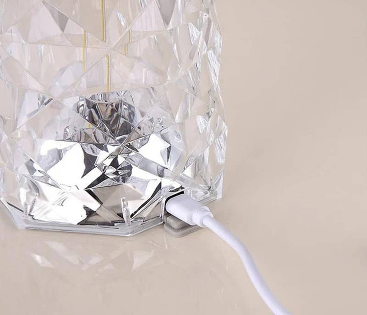 چراغ شارژی کریستال رومیزی طرح الماس (لامپ شارژی رومیزی طرح الماسی)